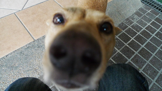 隔天我們吃完早餐出來牠倒是很殷勤,積極到我的相機都對焦到地板了。不過牠到底覺得我會從哪裡拿出食物啊,從口中嗎?(一陣嘔吐)