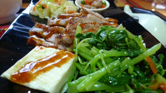 午餐吃的這家豬肉很好吃,是烤的油而不膩~但這張照相技術大崩壞,為什麼主題豬肉那麼不清楚,我都快去跳樓謝罪了(彈跳)