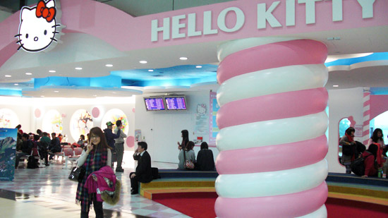 長榮的 C3 登機門充滿了無嘴貓哈囉凱蒂……該說是好可愛還是好可怕呢……