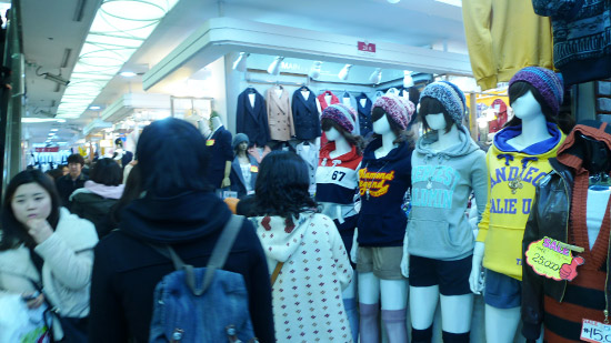 但是我們也有遇到和藹的阿啾媽(아줌마,歐巴或阿姨),很熱心的跟我們介紹 Tiffany 看上的毛衣,雖然沒有買也沒有擺臉色。但我想跟 Tiffany 沒有真的想買(所以沒有殺價),離開也有用韓文說謝謝有關係。所以說啦,有禮貌還是很重要的,還有不是真的很想要的衣服還是不要殺太快,以免砍不到自己想要的價錢,還被晚娘臭臉伺候。當然啦,我們還是要表面以和為貴,但是用中文罵個●你●之類的(反正他們聽不懂,小朋友不要學);不過還是請看一下場合,畢竟韓國離大陸那麼近,誰知道周圍有誰聽得懂中文。出國常常會覺得好像周圍都聽不懂,嗯勾這其實是個盲點啊華生!畢竟隨時都可能有聽得懂中文的人會冒出來呀!