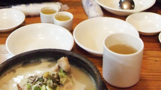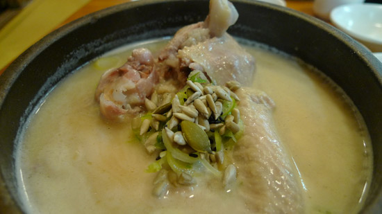 老實說,雖然這種第一次吃傳統美食應該要好好品嚐,不過我們短時間之內吃了三餐(午餐→下午吃飛機餐→晚上吃蔘雞湯,又不是在餵豬),實在很難吃光光;只有小可成功達成吃乾抹淨的任務,拍拍手拗(啪啪啪啪啪)