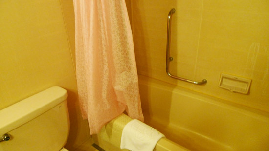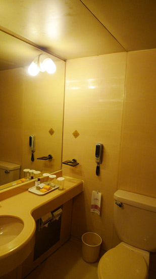 浴室就是普通的浴室。有提供三種尺寸的毛巾、肥皂、浴帽、化妝水和乳液。