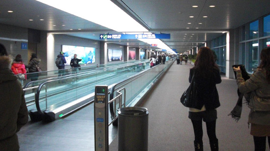 從飛機一下來就會看到長長的輸送帶。要入境還要搭電車到另一棟。