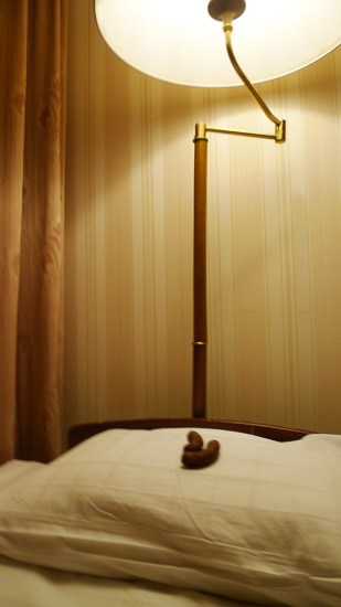 房間長這樣。床頭呀、桌椅呀、櫃子啊,都有種西洋古典風,女生會很喜歡。(至少 Tiffany 很喜歡,她應該是女生。)燈的開關都在床頭櫃,但韓國乾冷的天氣實在很容易電到,開燈電到,開窗電到,連摸門上的窺視孔也會電到= = 去韓國務必要多抹點乳液呀~