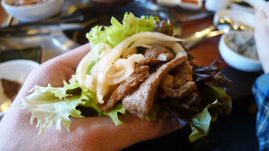 肉都是醃過的,烤的時候也不容易老,很嫩很好吃!唯一的遺憾是沒有吃到五花肉,有看韓國綜藝的話應該就會很想吃吧!腦海裡一直浮現《我們結婚了》Nickhun 和 Victoria 互餵烤肉的場景啊 T T