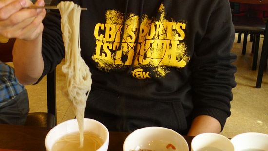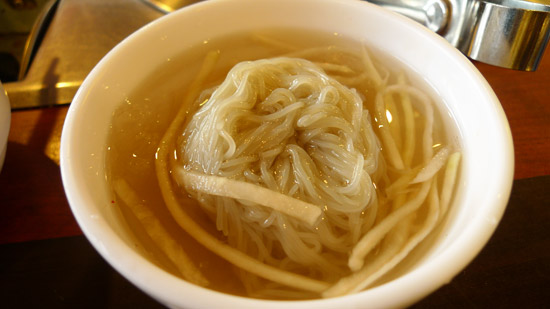 雖然是冬天,可是冷麵還真的是冷冰冰的,我們的導遊還有請他少放一點冰,可是還是冰到敏感性牙齒酸痛啊orz 也許是因為室內都有暖氣的關係吧,不過外熱內冷對身體好嗎真是好可怕啊~(顯示為胃痙攣)而且麵體超級潤的(台語),感覺咬不斷又沒有盡頭啊!又不是在吃長壽麵!搞到最後三個人裡面只有我吃完!