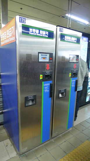 另外,搭乘出站後,別忘了找下面這台機器退錢喔!韓國的單程票裡面是有押金的,每張 ₩500,雖然才 NT$14 左右,但小錢也是錢哪!