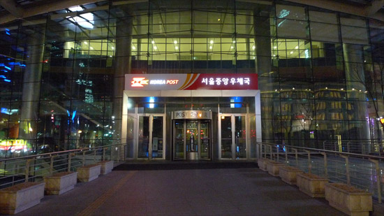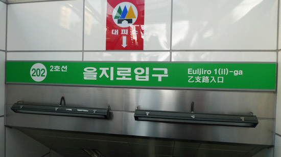 和明洞站相對的乙支路入口站,兩站分別壓住明洞的頭尾。