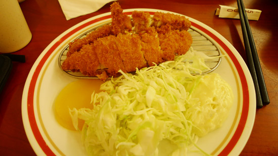 今天的倒數第二站,晚餐。三個人逛得差不多之後也餓得差不多了,所以開始到處尋找適合的晚餐餐廳。可是看來看去不是太貴,不然就是沒必要在韓國吃,於是最後決定從一開始的大街進去重新找找,依照 Tiffany 的說法是看到第三家店就毫不猶豫的進去吃。結果在這家豬排飯門口看一看就進去了,也忘記是不是第三家,重點是豬排飯明明就是日式料理啊(大驚)跟之前「沒必要來韓國吃」的原則簡直是大相逕庭啊!華生!華生你去哪了!我找到盲點了啊!
