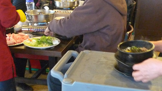 硬要在臨走前拍的火鍋跟石鍋,結果整張糊糊的……火鍋是中間有一根棒棒的那種鍋子唷(羞)