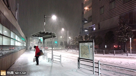(去迪士尼當天回家大雪的公車站)