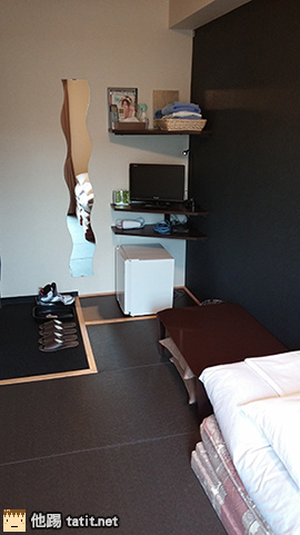 房間是狹長型的,大小適中,但如果你預計要買一~大~堆~東~西~~~的話,這裡可能不太適合喔!我們總共在這裡住了五個晚上,最後一天已經沒什麼地方可以踩腳了XDDDD 房間裡的設備與用品有這些: