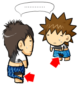 除了破掉的海灘褲,衝浪會一直把防寒衣卷上去,所以女生要小心!