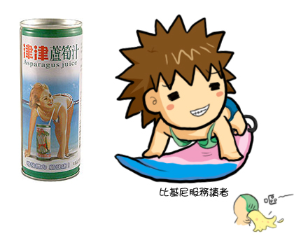 阿華在解釋起乘姿勢時,還給了一個很容易了解的比喻:跟津津蘆筍汁(鐵罐)上面的金髮女郎姿勢一樣就對了!
